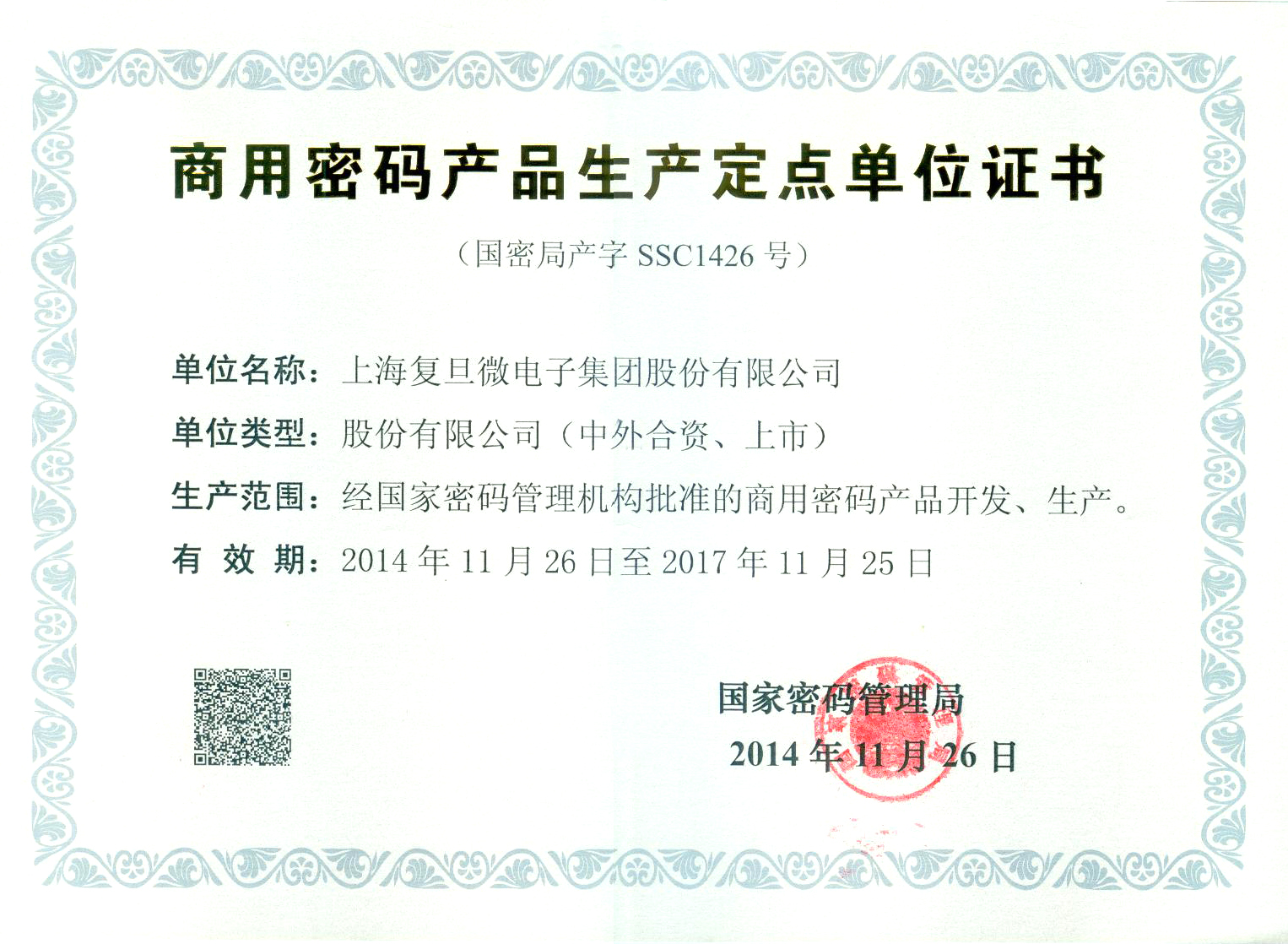 商用密碼產(chǎn)品生產(chǎn)定點單位證書