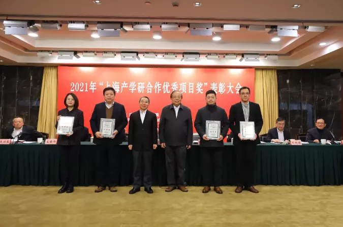 12月10日,2021年上海產(chǎn)學(xué)研合作優(yōu)秀項(xiàng)目獎(jiǎng)表彰大會在市政協(xié)舉行。市政協(xié)主席董云虎出席,并為獲獎(jiǎng)?wù)哳C獎(jiǎng)。