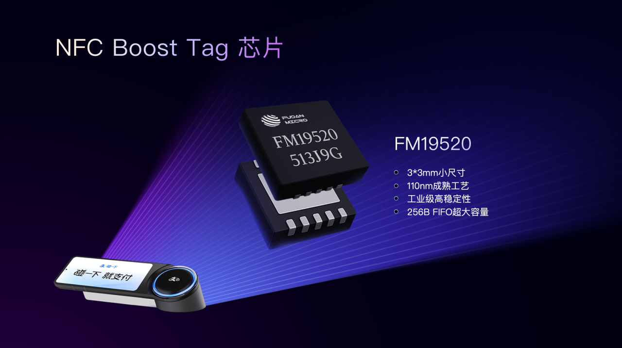 碰一下支付基于NFC技術(shù)實(shí)現(xiàn),設(shè)備內(nèi)置復(fù)旦微電子Boost Tag芯片。該系列芯片為支持雙界面通訊的有源 NFC 標(biāo)簽,通過(guò)射頻放大技術(shù)顯著增強(qiáng)了標(biāo)簽的近場(chǎng)耦合能力,相比傳統(tǒng)RFID標(biāo)簽,復(fù)旦微電子集團(tuán)的Boost Tag芯片通過(guò)電池供電,將通訊距離擴(kuò)展到更遠(yuǎn)的范圍,確保用戶操作更加自由便捷。