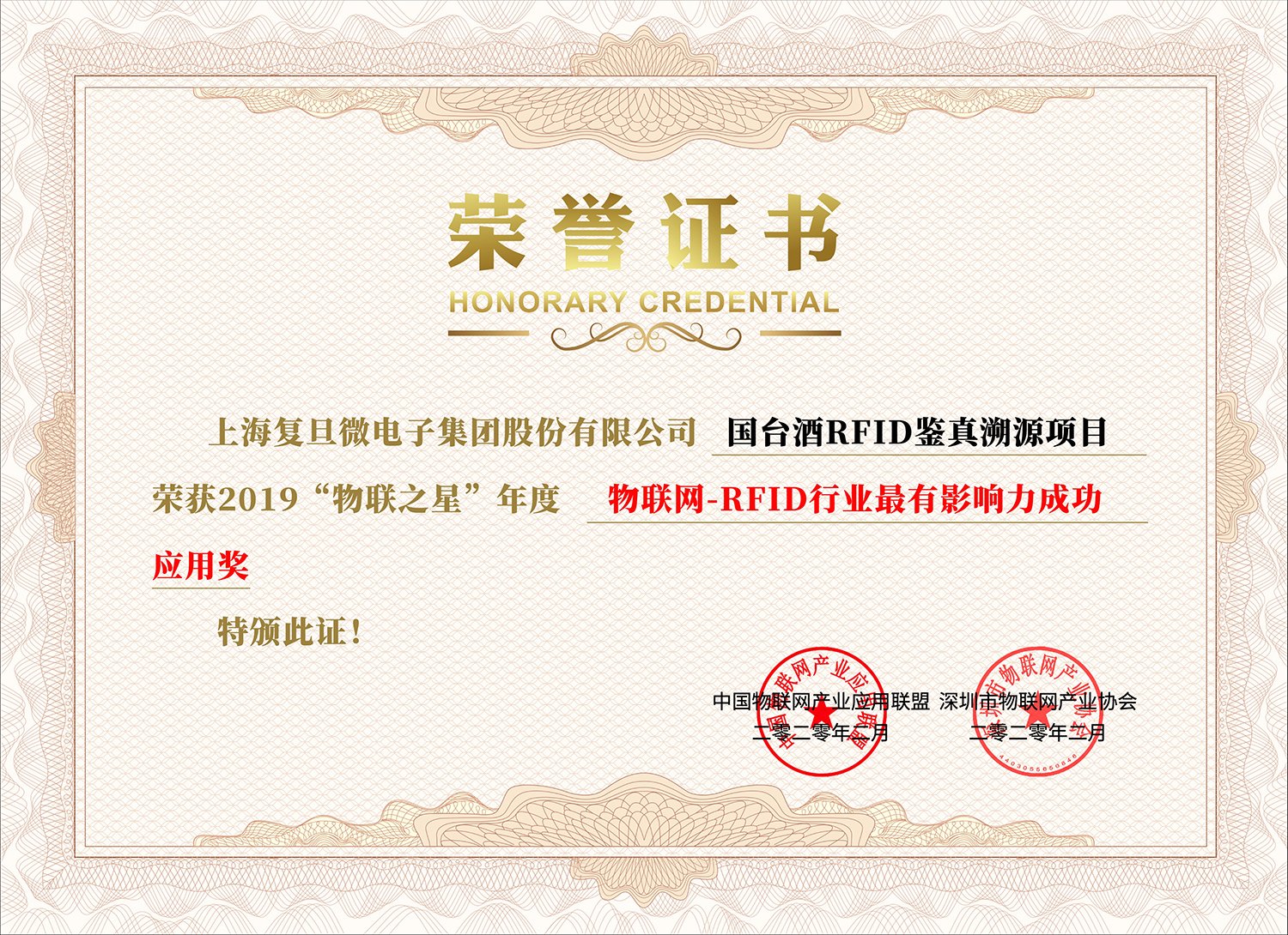 “物聯之星”RFID行業最有影響力成功應用獎——復旦微獨創PUF入主國臺酒鑒真溯源核芯體系