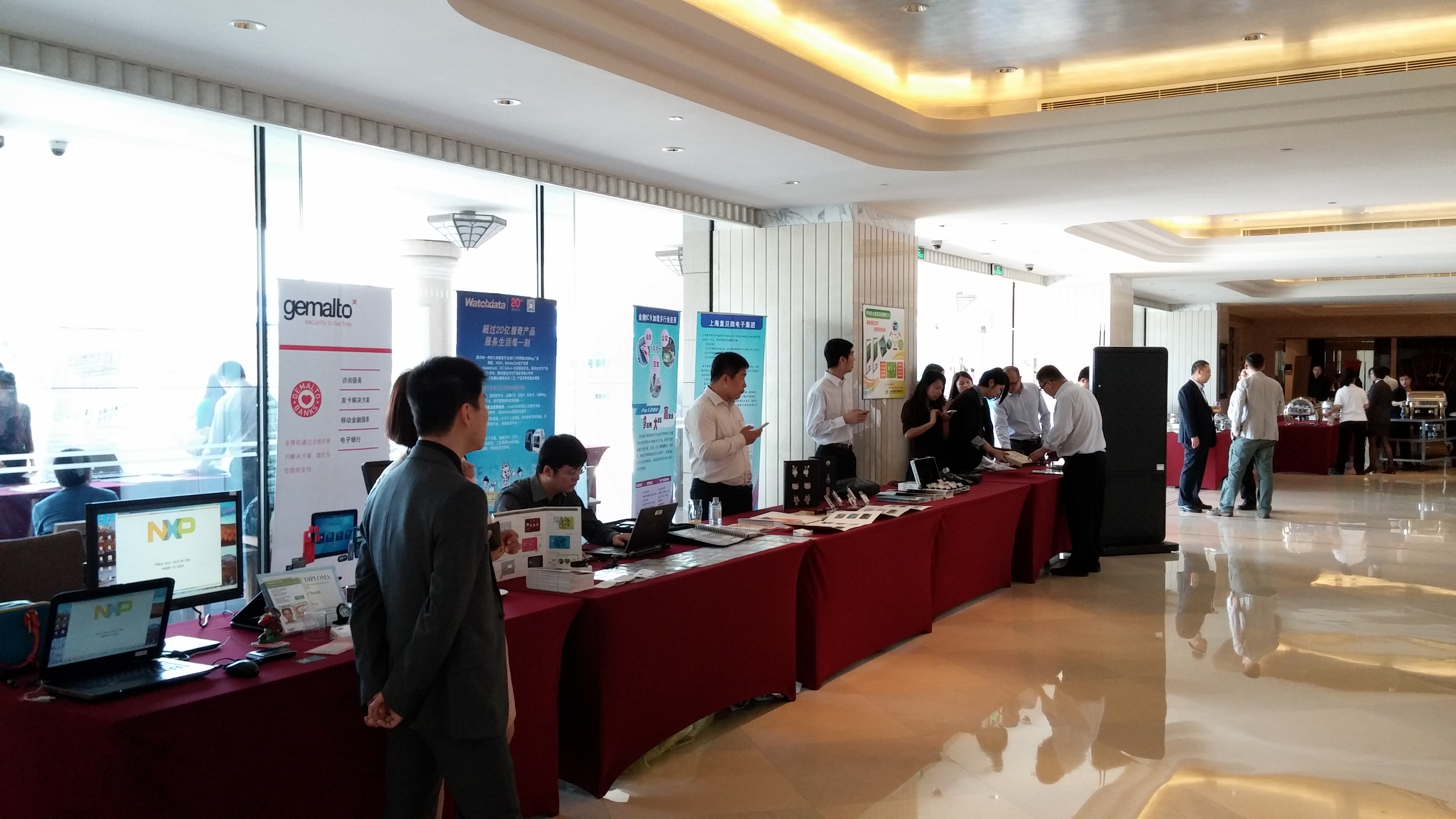 會議上中國銀聯(lián)的工作報告稱:截止到2014年第一季度,金融IC卡發(fā)卡總量達(dá)7.23億張,第一季度發(fā)卡1.3億張。其中國外芯片占據(jù)了超過70%的份額。三星、英飛凌、NXP、武漢天喻、金雅拓都有參展,展示了NFC手機(jī)支付方案、Smart Touch金融IC卡、閃付手環(huán)等產(chǎn)品。會議上同時提到了一些較新的技術(shù)如HCE支付、聲波支付。