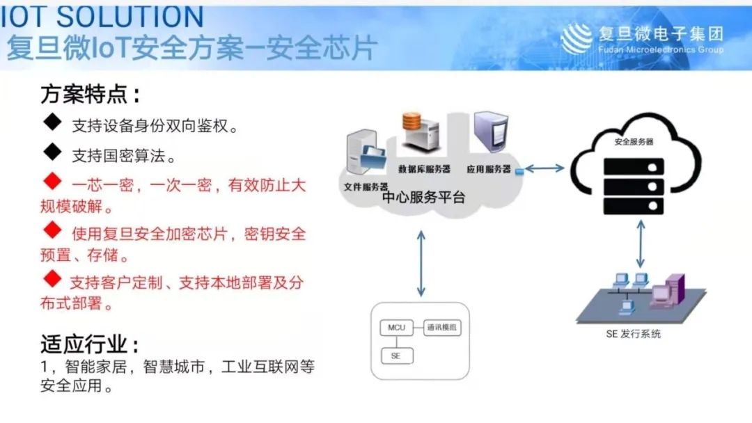 復旦微電子提供基于國密安全芯片的安全解決方案。通過雙向認證防止非法訪問,通過加密存儲,加密傳輸防止個人信息泄露。安全芯片FMSE通過銀聯(lián)卡芯片安全認證,國密二級認證等權威機構認證,保證存儲的密鑰和數(shù)據(jù)安全,能抵御目前常見的各類非法攻擊手段。